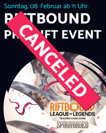 Wir haben bis jetzt gewartet, in der Hoffnung, dass die Lieferung heute noch eintrifft. Dies ist leider nicht geschehen. Darum müssen wir leider das Riftbound Pre-Release Event morgen absagen. Unser Distributor für das Pre-Rift-Kit hat es, trotz Einhaltung aller…